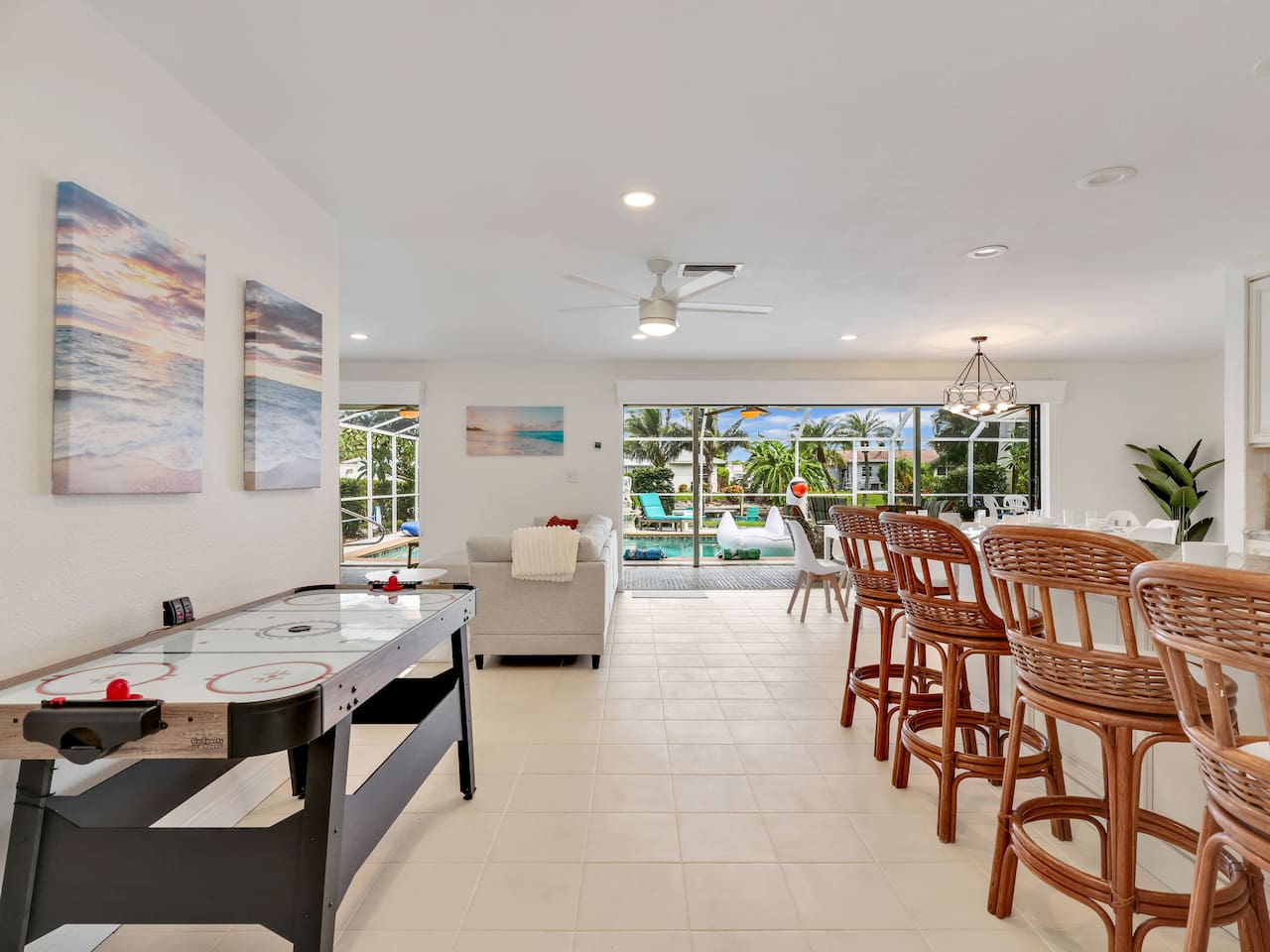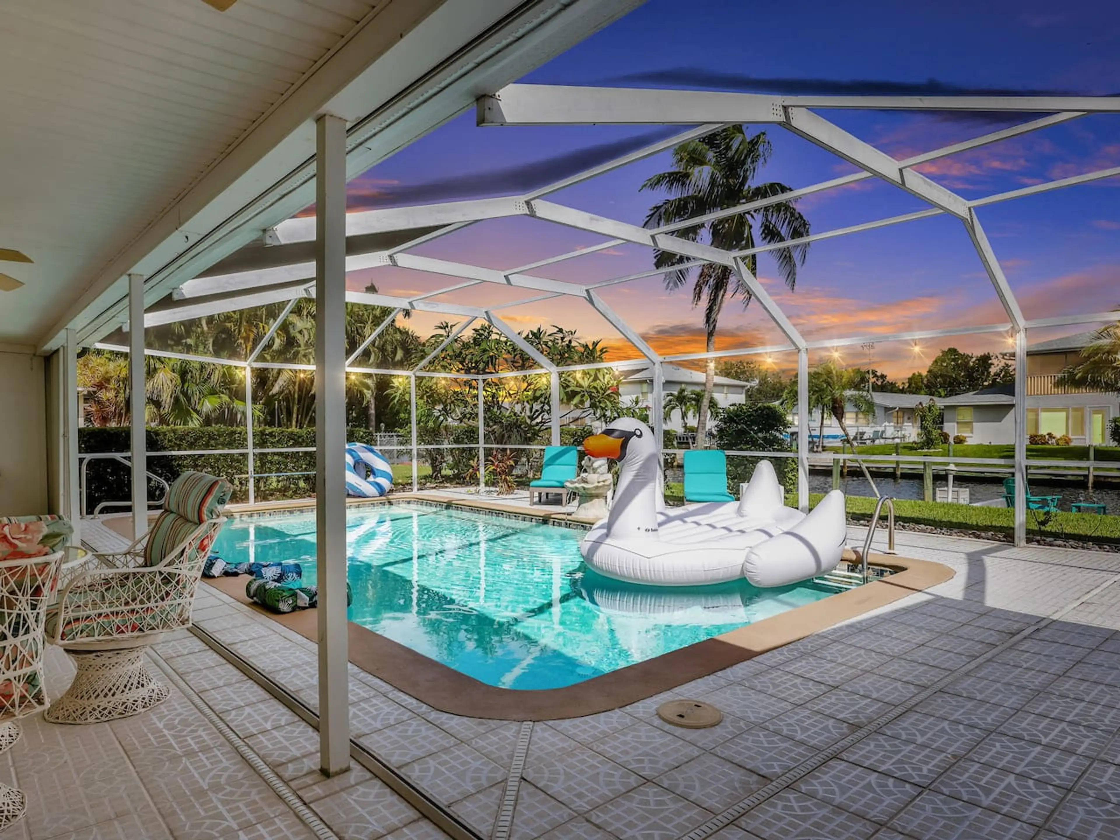 Newly renovated getaway with heated pool on a canal! Enjoy beach & baby gear, foosball, and a fully stocked home just a short walk to great restaurants. Only 5 mins to Yacht Club Beach and 20 mins to Fort Myers Beach. Perfect for families and fun! with the whole family at this peaceful place to stay...
